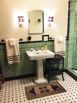 Thin plain liner trim tiles are one of the original designs from the period. They are often used a line or two below the top piece in wainscoting or to trace around a shower. They come in any of the 22 Mid-Century colors we feature.