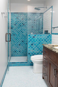 Sometimes referred to as fish scales or scallops; our peacock tile is cut by hand using a custom cutter. These interlocking shapes have been used for thousands of years. Sold unmeshed but with a to-scale layout sheet. Customization available please call 612-781-6409.