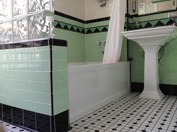 Black is a deep, glossy, opaque black and an exact match to most bathroom colors of the period. All the trims and caps are available too; contact us for info on more options. The Mid-Century Series are exact matches to tiles made from the 1920s to the 1950s.