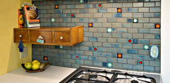 The Coco Nova Spot features a three-ring cosmic design that includes a light blue spot surrounded by a dark blue ring, all set against a mottled background of coppers and blues. Experimenting with three colors to create multiple auroras, this unique piece offers a distinct appearance each time. When the two colors come into contact, they produce a feathered halo effect.