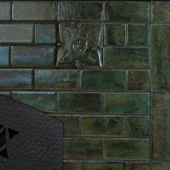 Jade Moss Single color Medieval tiles are hand-carved and stamped made out of exterior grade terra cotta and individually glazed.